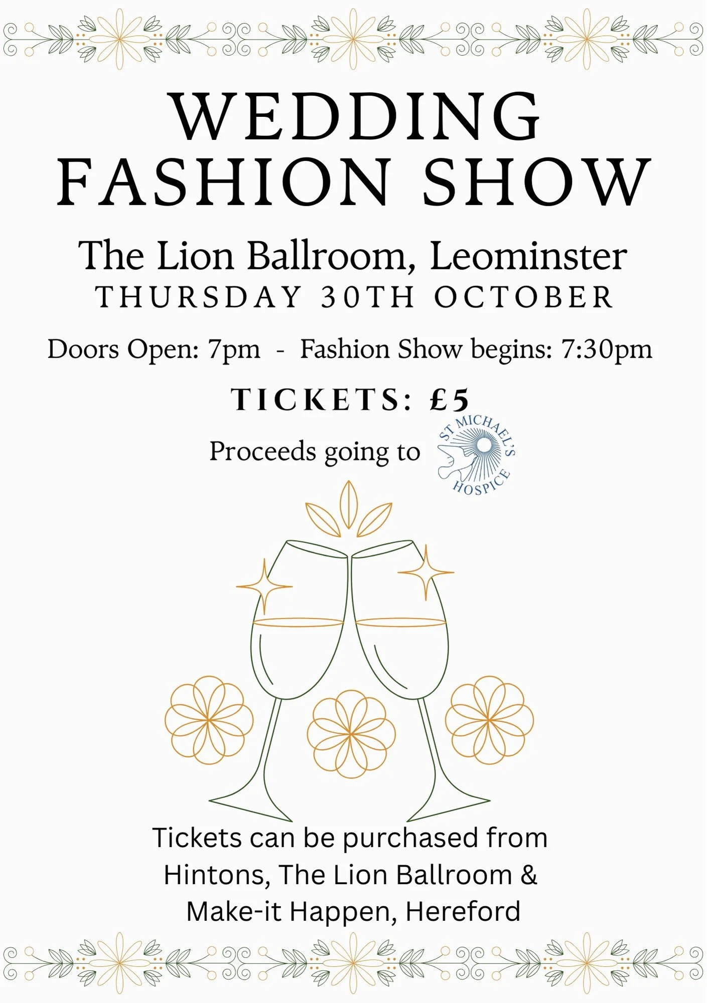 Tickets can be purchased from Hinton’s Country and Garden, The Lion Ballroom and Make-it Happen Hereford.